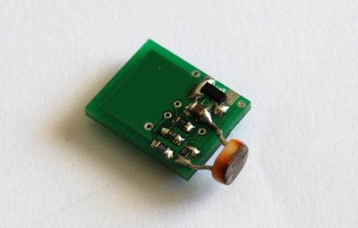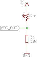 In this case, the light sensor I had works like a variable resistor, so it was just wired in series with a 10kOhm SMD resistor.